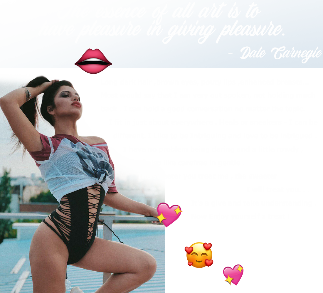 I love meeting new people, traveling, hanging out at the beach in my tiny thong bikinis, going to nudebeaches, working out, and bike riding. I also like luxury cosmetics(Dior), animals and flowers! I can be classy at a special event or party like a rockstar. I absolutely LOVE what I do. I’m enjoying life and taking advantage of what it has to offer. Reach out and say hi, I don’t bite ;)